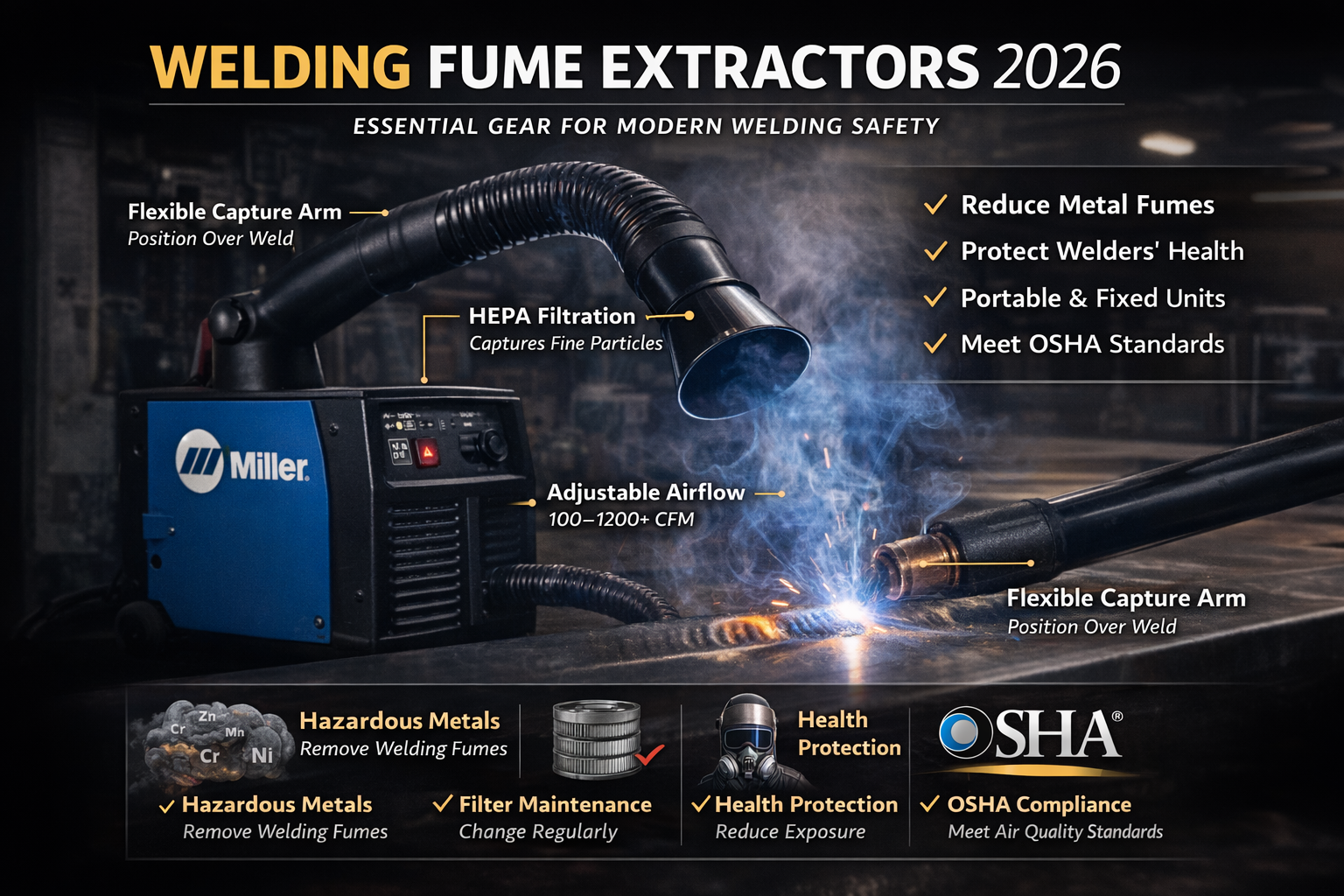 - Fume extractors reduce airborne exposure to hazardous metals
